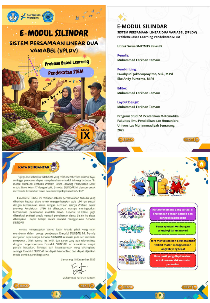 Development of the Silindar E-Module Based on Problem Based Learning with a STEM Approach on SPLDV to Enhance Students Problem Solving Skills