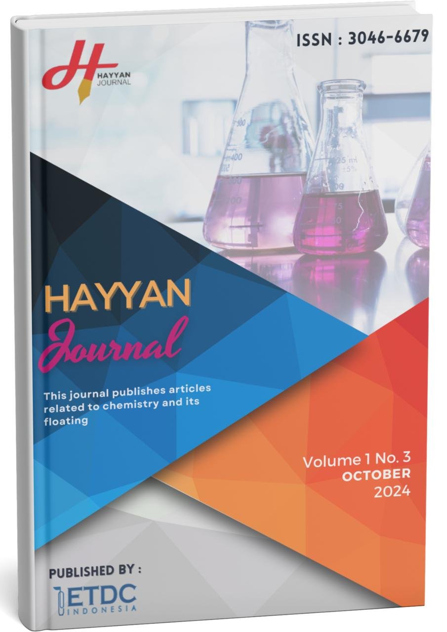 Vol. 2 No. 3 (2025)Hayyan Journal ISSN 3046-6679 (online), publishes scientific papers based on studies/research and literature review in the fields of Inorganic Chemistry, Organic Chemistry, Physical Chemistries, Chemical, Instruments, Analytical Chemistries, Materials Chemicals, Industrial, chemistry, Biochemistry, Applied Science, Applied Chemistry, and science education. The editor accepts articles that have never been published in other media with the writing format as stated on the manuscript writing guidelines page.